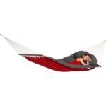 Mit ihrer ansprechenden rot/grauen Farbgebung und dem durchdachten Design ist diese Hängematte die ideale Ergänzung für jede Wohlfühloase.
