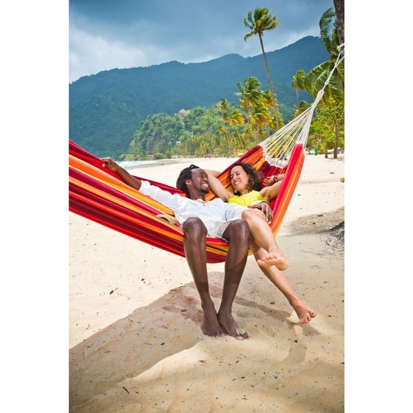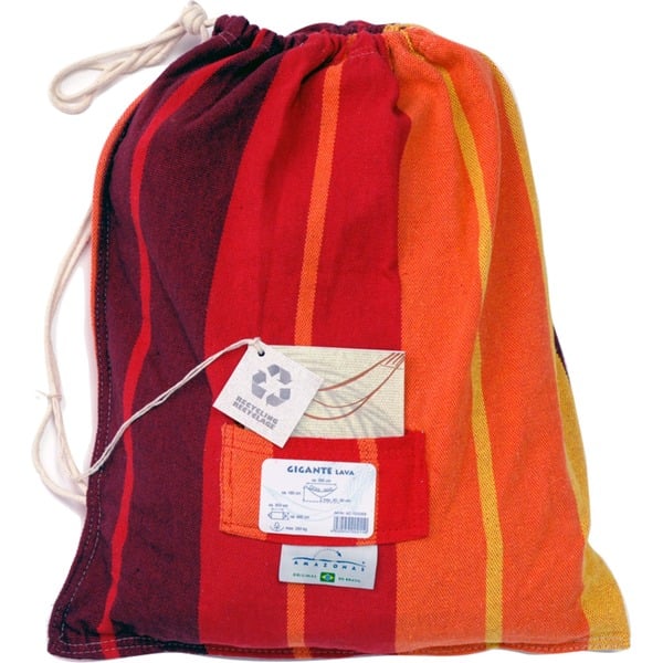 Die Gigante Lava von Amazonas ist die wahrscheinlich größte Hängematte der Welt! Es werden ca. 6.000 Baumwollfäden zu 6 qm extra fest gewebtem Hängemattenstoff verarbeitet. Damit sich diese riesige Liegefläche optimal auffalten kann, werden über 30 Meter besonders dicke Schnüre verwendet. Heraus kommt die Gigante Lava, die perfekte Verbindung zwischen zwei Aufhängepunkten, in der problemlos mehrere Leute bequem liegen können, zumal die Hängematte bis zu 280 Kilogramm trägt.Art.-Nr.: 1398065