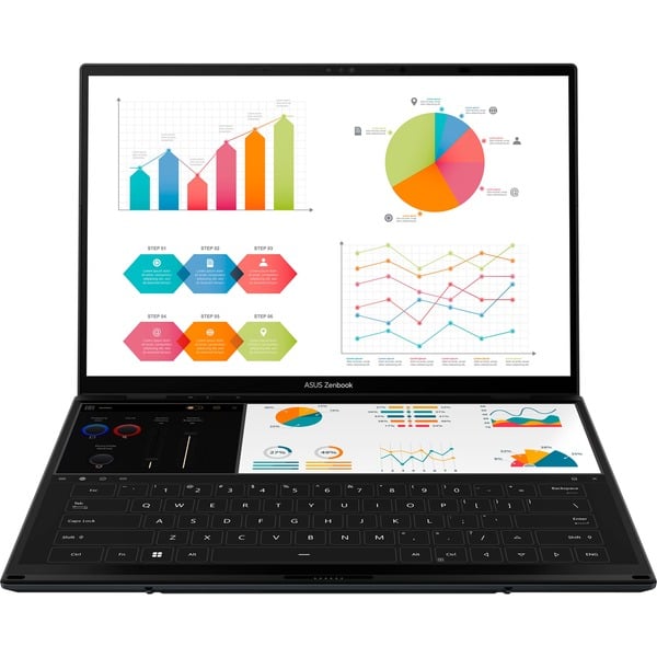 Für alle, die die Vorteile eines Multi-Monitor-Setups für Produktivität und Multitasking überall genießen wollen, ist das Zenbook Duo OLED (UX8406MA-PZ058X) der passende Begleiter. Trotz seiner kompakten Maße kann das Flexibilitäts-Wunder mit einer Leistung aufwarten, die allen Anforderungen genügt. Mit den Intel® Core™ Ultra 9 185H Prozessor inklusive KI Unterstützung für höchste Leistung und der schnellen Intel® Arc Grafik, den 32 Gigabyte LPDDR5X Arbeitsspeicher und einem zwei Terabyte großen SSD Speicher liefert das Zenbook Duo OLED in jeder Lebenslage Performance satt. Das Zenbook Duo OLED bietet gleich zwei hochwertige 35,6 cm (14“) OLED Lumina Displays mit einer Auflösung von 2880 x 1800 Pixeln, einer Bildwiederholrate von 120Hz und einer 100% DCI-P3 Farbraum Abdeckung. Auch in Sachen Konnektivität überzeugt das Zenbook Duo OLED dank schnellstem WiFi 6E und neuestem Bluetooth 5.3. So besteht stets eine schnelle und stabile Internetverbindung und alle Peripheriegeräte wie Headsets und Bluetooth-Eingabegeräte sind sicher verbunden.Art.-Nr.: 100055175