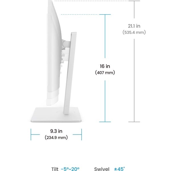 Hinweis Gesamthöhe Standfuß niedrige Position: 407 mm