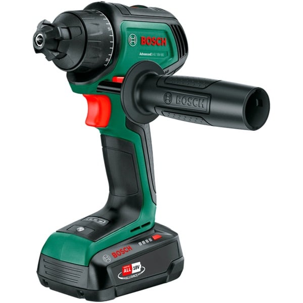 Der Akku-Bohrschrauber AdvancedDrill 18V-80 QuickSnap von Bosch vereint kraftvolles Bohren und Schrauben mit optimaler Flexibilität. Mit seinem maximalen Drehmoment von 78 Nm und der stufenlosen Drehzahleinstellung erledigt er mühelos jede Aufgabe, vom Vorbohren bis zum Einschrauben von Schrauben, Bolzen oder Befestigungselementen. Der robuste Bohrschrauber ist dank des bürstenlosen Motors und des abnehmbaren Metallbohrfutters sehr langlebig. Das 13mm-Bohrfutter kann verschiedenste Bohrer, Bits, Lochsägen und andere Zubehöre aufnehmen. Die Haltefunktion der magnetischen Kappe ist sehr praktisch beim Schrauben über Kopf oder in engen Bereichen, da die Schrauben nicht von Hand festgehalten werden müssen. Das QuickSnap-Schnellwechselsystem ermöglicht einen einfachen Wechsel zwischen dem 13mm-Futter zum Bohren und der Magnetkappe zum Schrauben oder weiteren, separat erhältlichen Aufsätzen. Der verstellbare Zusatzhandgriff verbessert die Kontrolle und Stabilität beim Arbeiten, was zu mehr Komfort und weniger Ermüdung führt. Die integrierte Bosch Syneon Technology sorgt für optimale Leistung und maximale Laufzeit. Der Bohrschrauber AdvancedDrill 18V-80 QuickSnap ist der kompetente Allrounder für verschiedenste Bohr- und Schraubarbeiten in Holz, Metall, Keramik und Kunststoff.Art.-Nr.: 100061137