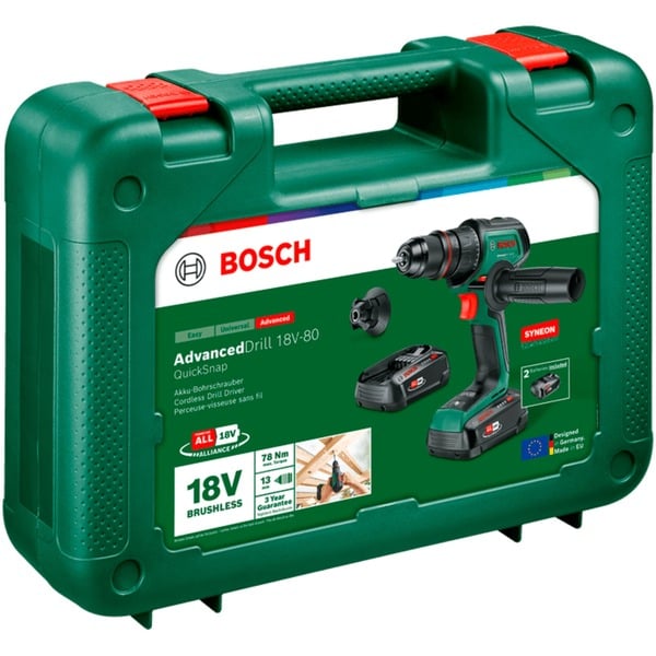 Bosch Akku-Bohrschrauber AdvancedDrill 18V-80 QuickSnap (grün/schwarz, 2x Li-Ionen Akku 2,5Ah, POWER FOR ALL ALLIANCE)