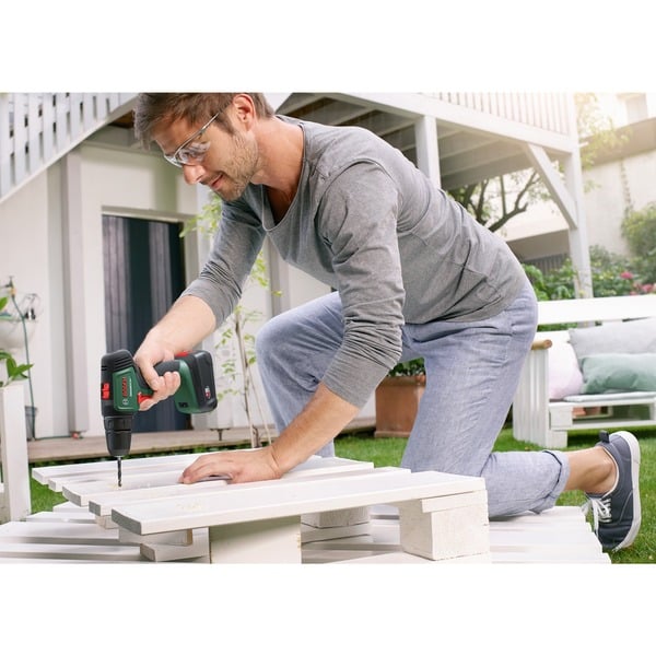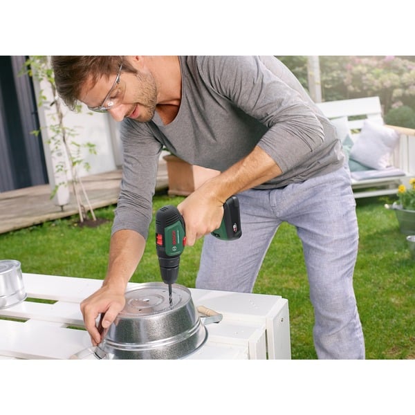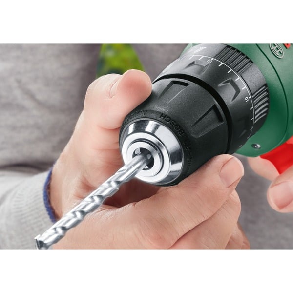 Der Akku-Bohrschrauber UniversalDrill 18V von Bosch ist sehr komfortabel und handlich. Das hilfreiche kabellose Werkzeug verfügt über ein 2-Gang-Planetengetriebe und 20 Drehmomentstufen plus Bohrstufe für optimales Drehmoment beim Schrauben und ideale Geschwindigkeit beim Bohren. Der langsame starke erste Gang ist ideal zum Schrauben und Bohren größerer Durchmesser, während der zweite Gang einen schnellen Bohrfortschritt bei kleinen Durchmessern ermöglicht. Dank des einhülsigen 10-mm-Bohrfutters mit Auto-Lock können die Bohrer und Schrauberbits mühelos gewechselt werden. Der kompakte Bohrschrauber mit ergonomischem Design ist außerdem mit einem eingebauten LED-Arbeitslicht ausgestattet, um die Sicht an dunklen Stellen zu erleichtern. Der Bohrschrauber UniversalDrill 18V ist der kompetente Allrounder für verschiedenste Bohr- und Schraubarbeiten in Holz, Metall und Kunststoff. Dank Lithium-Ionen-Technologie gibt es keinen Memory-Effekt und keine Selbstentladung, der Akku ist immer einsatzbereit.Art.-Nr.: 1826982