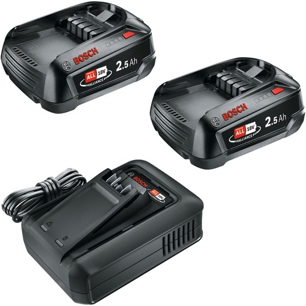 Bosch Akku Starter-Set 18V 2x 2,5Ah + Schnellladegerät AL 18V-44 (schwarz, 2x Li-Ionen Akku 2,5Ah, POWER FOR ALL ALLIANCE)