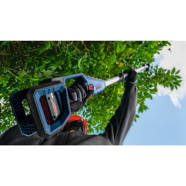 Die Akku-Teleskop-Heckenschere GHE 18V-50 TP Professional von Bosch ist eine kabellose, ergonomische Lösung zum Schneiden und Stutzen von hohen Hecken und Büschen. Das kraftvolle Akku-Gerät mit bürstenlosem Motor sorgt für eine starke Leistung und eine lange Lebensdauer. Sie ermöglicht kontinuierliches Schneiden, und das Bosch Anti-Blockier-System verhindert, dass sich die Heckenschere verklemmt. Mit der Schnittkapazität von 20mm lassen sich auch dickere Äste reibungslos und bequem schneiden. Die Teleskop-Heckenschere GHE 18V-50 TP Professional erreicht dank seiner 2,5 Meter langen Teleskopstange und des verstellbaren Winkelkopfes mühelos und ohne Leiter auch die Spitze hoher Hecken. Außerdem ermöglicht der abgewinkelte Schneidkopf ergonomische Schnitte aus verschiedenen Winkeln für einen sauberen oberen und seitlichen Abschluss. Die geringe Lautstärke und der emissionsfreie Betrieb machen sie zum idealen Werkzeug für Arbeiten in Wohngebieten oder anderen lärmsensiblen Bereichen, und die Akku-Heckenschere lässt sich für den einfachen Transport in zwei Teile teilen. Die benötigten Akkus sind Teil der AMPShare Alliance. Ein einziger Akku passt für alle Werkzeuge und Maschinen im blauen Bosch Professional 18V System, kann aber auch markenübergreifend mit zahlreichen weiteren Geräten anderer Hersteller aus der AMPShare Alliance verwendet werden. Nie mehr neue Akkus für jedes neue Werkzeug kaufen, nie mehr nach dem „richtigen“ Akku suchen, mit AMPShare reicht ein Akku für alle Arbeiten.Art.-Nr.: 100106577