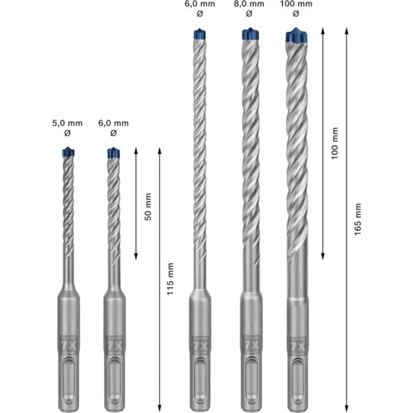 Bosch Expert Hammerbohrer-Satz SDS-plus-7X, 5-teilig (Ø 5 / 6 / 8 / 10mm, Arbeitslänge 50mm / 100mm)