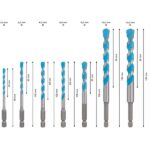 • Umfassendes Set: Mit 7 Bohrern in den gängigsten Größen (4mm bis 12mm) sind Sie bestens ausgestattet, um verschiedene Anforderungen zu meistern.