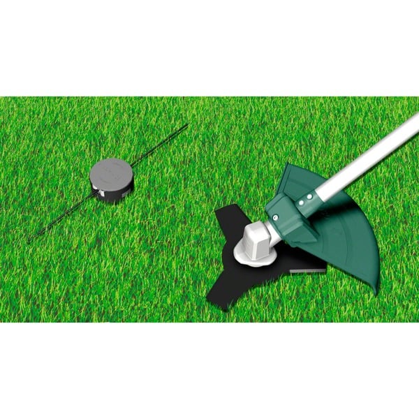 Zubehör vorhanden Extrastarker Faden 37cm (3 Stück), Freischneidermesser (1 Stück), Tragegurt