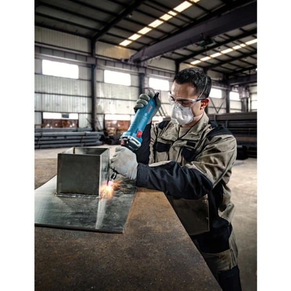 Der Bosch Geradschleifer GGS 30 LS Professional ist ein kompakter, ergonomisch geformter Helfer mit langer, schlanker Schleifspindel für vielseitige Schleifarbeiten. Er erledigt mühelos Metallarbeiten und ist das Werkzeug der Wahl zum Schleifen von Formteilen, Entgraten von Oberflächen, Fräsen von Bohrungen, Bearbeiten von Schweißnähten und Entfernen von Farbe und Rost. Die Konstantelektronik hält die Drehzahl bei Leerlauf und Last nahezu konstant und gewährleistet so eine gleichmäßige Arbeitsleistung. Mit dem Stellrad zur Drehzahlvorwahl kann die benötigte Drehzahl auch während des Betriebes vorgewählt werden. Die Werkzeugaufnahme fasst Spannzangen bis Ø 8mm. Der GGS 30 LS Professional ist durch seinen Spannhals mit 43mm Aufnahme auch stationär einsetzbar. Bei plötzlichem Rückschlag des Werkzeugs, z.B. Blockieren beim Fräsen, unterbricht KickBack Control sofort elektronisch die Stromzufuhr zum Motor. Der Wiederanlaufschutz verhindert das unkontrollierte Wiederanlaufen des Schleifers nach einer Unterbrechung der Stromzufuhr, und der elektronische Sanftanlauf begrenzt das Drehmoment beim Einschalten und erhöht so die Lebensdauer des Motors.Art.-Nr.: 100044365
