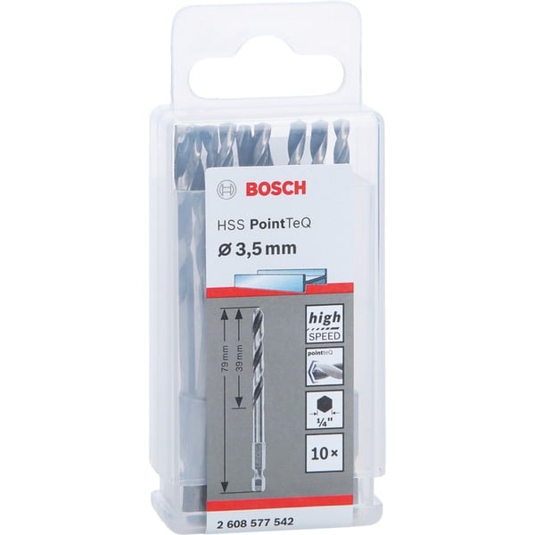 Bosch HSS-Spiralbohrer PointTeQ Hex, Ø 3,5mm (10 Stück, Arbeitslänge 39mm)