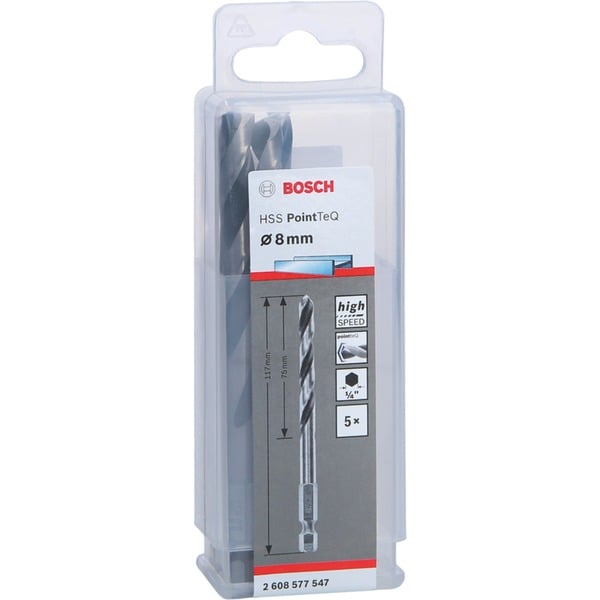 Bosch HSS-Spiralbohrer PointTeQ Hex, Ø 8mm (5 Stück, Arbeitslänge 75mm)