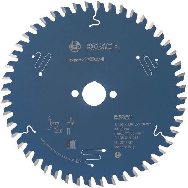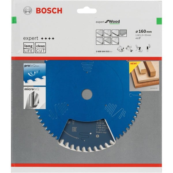 Bosch Kreissägeblatt Expert for Wood, Ø 160mm, 48Z (Bohrung 20mm, für Handkreissägen)