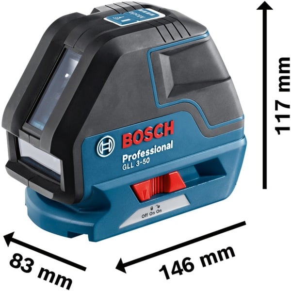 Der benutzerfreundliche Bosch Linienlaser GLL 3-50 Professional nivelliert sich in weniger als 4 Sekunden selbst und dient zum schnellen Ausrichten von Linien. Der Laser eignet sich für Anwendungen in Innenräumen, z.B. zur Montage von Regalen oder Fenstern, zur Installation von Abflussrohren oder zum Verlegen von Wandfliesen. Durch eine zweite vertikale Laserlinie ist er auch ideal zum schnellen Quadrieren. Zwei vertikale Laserlinien, eine horizontale Laserlinie und der Lotpunkt ermöglichen viele verschiedene Anwendungen. Das kompakte Design bietet komfortables Handling und gute Kontrolle. Für eine bequeme Positionierung der Laserlinien wird er mit einem Mini-Drehstativ mit höhenverstellbaren Füßen und Feineinstellung der vertikalen Linie geliefert. Der Linienlaser GLL 3-50 Professional bietet Laserlinien mit einem Arbeitsbereich von bis zu 10 Metern, der bei Verwendung des separat erhältlichen Laserempfängers LR 2 auf bis zu 50 Meter erweitert werden kann. Die Lotpunktreichweite beträgt bis zu 5 Meter. Dank Staub- und Spritzwasserschutz nach IP 54 ist er außerdem sehr robust.Art.-Nr.: 1132812
