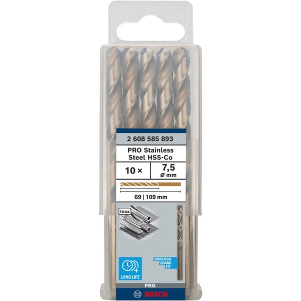 Bosch PRO Stainless Steel HSS-Co Spiralbohrer, Ø 7,5mm (10 Stück, Arbeitslänge 69mm)
