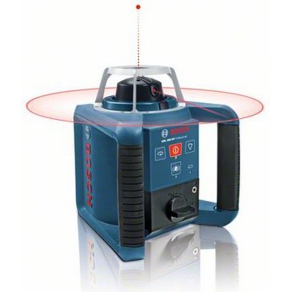 Bosch Rotationslaser GRL 300 HV Professional (blau, rote Laserlinie und Lotpunkt, mit Halterung, Baustativ, Laser-Empfänger, im Koffer)