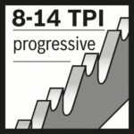 • Progressive Zahnteilung: Die innovative progressive Zahnteilung von 1,4 mm bis 3,4 mm ermöglicht schnelle und präzise Schnitte in unterschiedlichen Materialstärken und -typen.