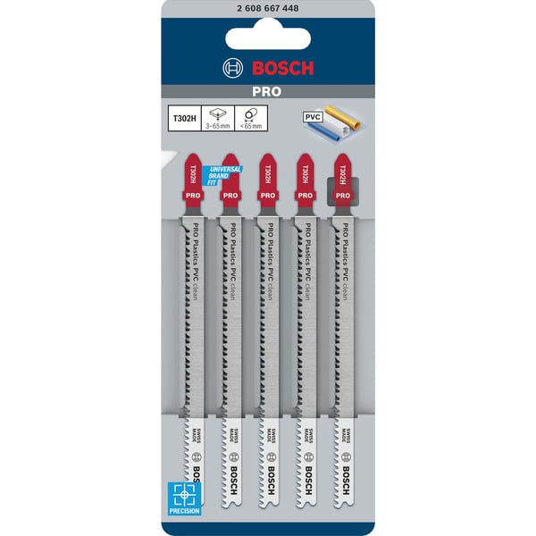 Bosch Stichsägeblatt T 302 H Clean for PVC, 132mm (5 Stück)
