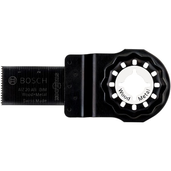 Das BIM Sägeblatt Starlock AIZ 20 AB Wood + Metal von Bosch ermöglicht ermöglicht Feinschnitte in Holz und ungehärtetes Metall. Das nur 20mm schmale Blatt ermöglicht Filigranarbeit. Beim Schneiden von ungehärtetem Metall und abrasivem Material ist die Bimetallverbindung aus Blatt aus HCS-Stahl (Stahl mit hohem Kohlenstoffgehalt) und Zähnen aus HSS-Stahl (Schnellarbeitsstahl) verschleiß- und hitzeresistent. Das Starlock-Aufnahmesystem ermöglicht ‌einen schnellen Blattwechsel ohne Blattberührung in nur drei Sekunden. ‌Das robuste Starlock-Aufnahmesystem erhöht die Kontrolle über die Führung und ermöglicht hochgradig präzise Schnitte. Das robuste Aufnahmesystem des Blatts reduziert Lateralschwingung und ermöglicht mittels direkter Kraftübertragung haarfeine Schnitte. Es wird verwendet zum Sägen von Aussparungen in Möbelbauteile, zum bündigen Ablängen von Kupferrohren und für Tauchschnitte in Gipskartonplatten. Das AIZ 20 AB Wood + Metal sägt Holz und ungehärtetes Metall, weiche Kunststoffe und Paneele mit Kunststofflaminierung. Es ist mit allen Werkzeugen des Typs Starlock, Starlock Plus und Starlock Max, sowie den gängigen Multifunktionswerkzeugen kompatibel.Art.-Nr.: 1684551