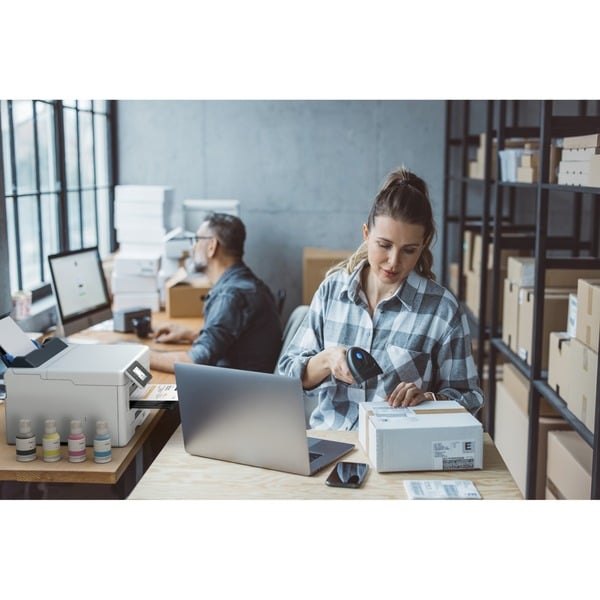 Der Maxify GX5550 überzeugt durch höchste Effizienz und hohe Flexibilität. Dieser Farb-Tintenstrahldrucker druckt aus zwei automatischen Kassetten mit jeweils 250 Blatt Kapazität und einem Einzug für bis zu 100 Blatt auf verschiedensten Medien wie Hochglanzetiketten, Umschlägen, Lieferscheinen und Fotopapier. Dabei arbeitet er nicht mit klassischen Tintenpatronen, sondern hat Tintentanks, in die Tinte direkt eingefüllt wird. Das reduziert die Kosten pro Seite und sorgt für eine hohe Reichweite des Drucksystems. Der Sparsam-Modus macht das System noch effizienter. Im Lieferumfang ist bereits ein Satz Tinte enthalten – für bis zu 6000 Seiten Schwarzdruck (ISO) und bis zu 14000 Seiten (ISO) Farbdruck. Dabei gibt er bis zu 24 Schwarzweiß-Seiten (ISO) oder bis zu 15,5 Farb-Seiten (ISO) pro Minute aus und kann per LAN, WLAN oder WiFi direct printing angesprochen werden. Dadurch wird auch das Drucken von Mobilgeräten mit iOS oder Android zum Kinderspiel. Die Steuerung des Geräts erfolgt über einen Touchscreen an der Vorderseite.Art.-Nr.: 100020820