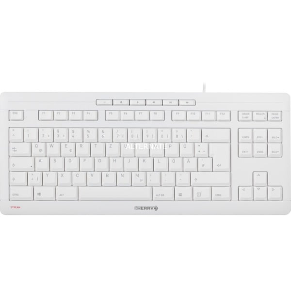 CHERRY STREAM KEYBOARD TKL, Tastatur (weiß/grau, DE-Layout, Cherry SX-Scherentechnologie)