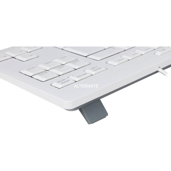 Besonderheiten Alphanummerischer Bereich nach DIN ISO 9995-1 | Integrierte Metallplatte für maximale Verwindungssteifigkeit | 2 integrierte Statusanzeigen für Feststell- und Rollen-Taste | Anti-Rutsch-Pads: 7 Stück (18 x 4 mm) | Funktion Zusatztasten: Ton leiser, Ton an/aus, Ton lauter, Voriger Titel, Start/Pause, Nächster Titel