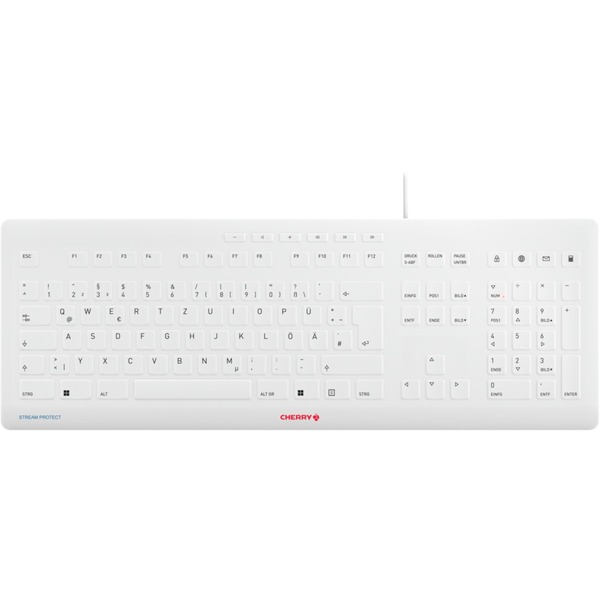 CHERRY STREAM PROTECT KEYBOARD, Tastatur (weiß, DE-Layout, Cherry SX-Scherentechnologie)