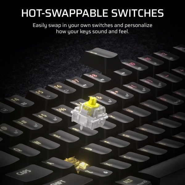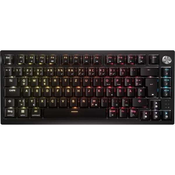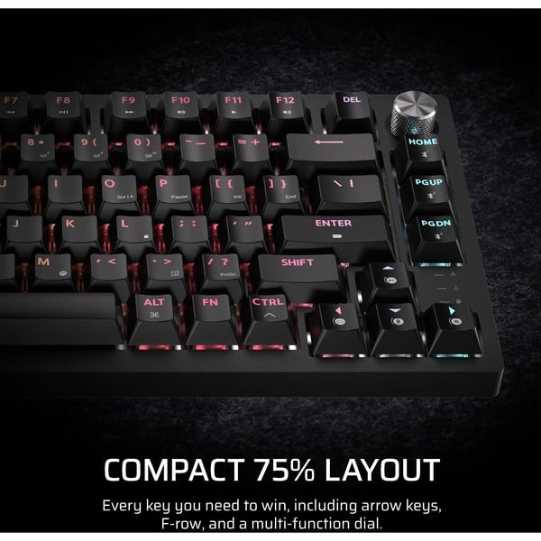 Die Corsair K65 PLUS WIRELESS Gaming-Tastatur sticht mit ihrem überlegenem Geschick und unverwechselbarem Design aus der Masse hervor. Mit ihrem 75-%-Format verfügt sie über Pfeil- und Utility-Tasten, bietet aber mehr Platz für ausladende Mausbewegungen. Das Multifunktionsrad ist über iCUE programmierbar, und steuert RGB-Helligkeit, Zoom, Bildlauf und mehr. Zwei integrierte geschräuschdämpfende Schichtenunterdrücken due internen Ping- und Klickgeräusche und sorgen für gedämpfte Tippakustik. Die vorgeschmierten, taktilen Corsair MLX Fusion Schalter vereinen eine angenehmes Feedback und ein hörbares Klackgeräusch für ein optimales Tipperlebnis. Mit den Hot-Swap-fähigen Tastenschaltern kann die K65 PLUS WIRELESS schnell angepasst und nach den persönlichen Wünschen modifiziert werden. Der ultraschnelle 2,4-GHz-Drahtlosmodus ermöglicht verzögerungsfreie Verbindung für herausragende Gaming-Leistung und via Bluetooth kann man zwischen mehreren Geräten bequem wechseln. Alle Einstellungen der K65 PLUS WIRELESS lassen sich per iCUE-Software vollständig anpassen.Art.-Nr.: 100080412