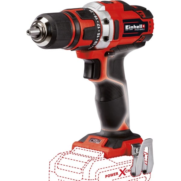Der Einhell TE-CD 18/40 Li-Solo Akku-Bohrschrauber ist ein leistungsstarkes, vielseitiges Gerät, das bei Schraub- und Bohrarbeiten rund um Haus, Hof und Werkstatt sehr gute Dienste leistet. Das Zweigang-Getriebe und der leistungsstarke Motor für hohes Drehmoment erlauben kraftvolles Schrauben und schnelles Bohren. Der Bohrschrauber wird ohne Akku und Ladegerät ausgeliefert. Der TE-CD 18/40 Li-Solo Akku-Bohrschrauber ist mit einem 13mm-Schnellspannbohrfutter mit Quick-Stop-Funktion und automatischer Spindelarretierung ausgestattet, was einen blitzschnellen, werkzeuglosen Bohrerwechsel ermöglicht. Mittels fein dosierbarer Drehzahlelektronik ist ein gefühlvolles Anbohren gewährleistet, während die Drehmoment-Rutschkupplung das Überdrehen von Schrauben verhindert. Der ergonomische Softgrip, das LED-Arbeitslicht und der praktische Gürtelclip sorgen dabei für komfortables Arbeiten. Die Lieferung erfolgt ohne Akku und ohne Ladegerät. Zum Betrieb des Akku-Bohrschraubers TE-CD 18/40 Li-Solo ist ein separat erhältlicher 18 Volt-Systemakku aus der Power X-Change-Reihe erforderlich, wie er auch in den anderen Einhell Werkzeugen und Gartengeräten benutzt wird.Art.-Nr.: 1504254