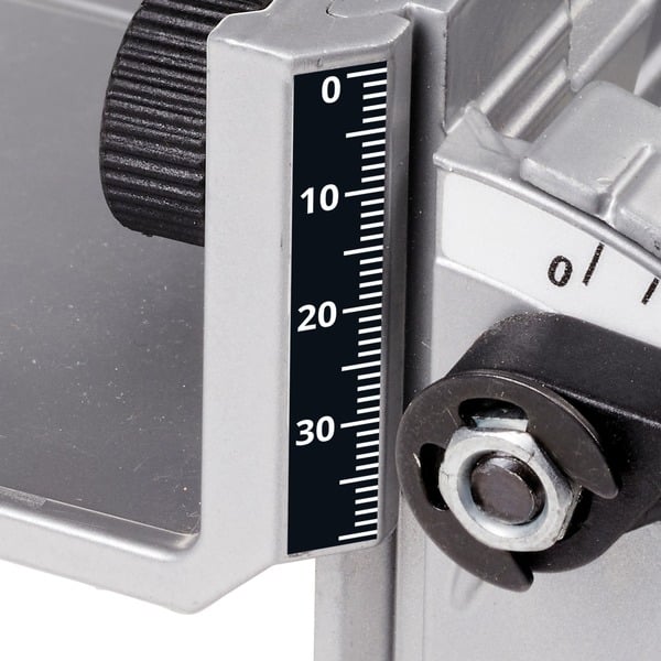 Weitere Informationen Stufenlose 90°-Winkel- und Höheneinstellung, passend für handelsübliche Flachdübelgrößen bis zum Typ 20