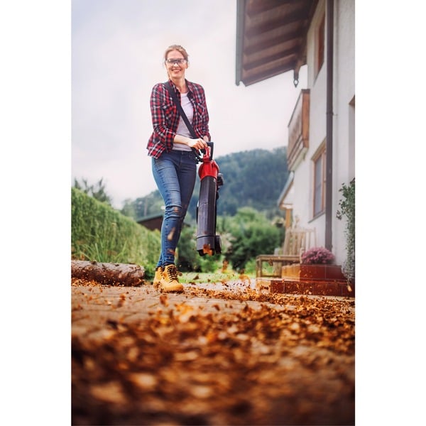 Der Einhell Akku-Laubsauger und -bläser GE-CL 36 Li E-Solo ist ein handlicher und leistungsstarker Laubsauger. Bequem und ohne Werkzeug kann er von Saug- auf Blasfunktion umgestellt werden. Ein verstellbarer Zusatzhandgriff sorgt für einen festen Halt bei der Arbeit. Mit der elektronischen Drehzahlregulierung kann die gewünschte Luftgeschwindigkeit reguliert werden. Der Fangsack mit Sichtfenster ermöglicht eine leichte Füllstandskontrolle. Außerdem verfügt der Akku-Laubbläser GE-CL 36 Li E-Solo über einen komfortablen Tragegurt, der das Gewicht auf den Körper verteilt und so Ermüdungserscheinungen bei der Arbeit vorbeugt. Durch die großen Räder kann der Akkubläser bei Arbeiten am Boden abgestellt und geschoben werden, der Hobbygärtner wird dadurch weiter entlastet. Die Lieferung erfolgt ohne Akku und ohne Ladegerät. Zum Betrieb des Akku-Laubbläsers GE-CL 36 Li E-Solo sind zwei separat erhältliche 18 Volt-Systemakkus aus der Power X-Change-Reihe erforderlich, wie sie auch in den anderen Einhell Werkzeugen und Gartengeräten benutzt werden.Art.-Nr.: 1327837