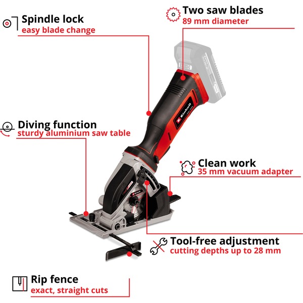 EINHELL Akku-Mini-Handkreissäge TE-CS 18/89 Li-Solo, 18Volt (rot/schwarz, ohne Akku und Ladegerät)