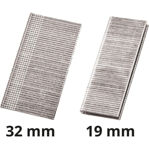 Zubehör vorhanden 300 Nägel (32mm), 300 Klammern (19mm), Gürtelclip, Innensechskantschlüssel