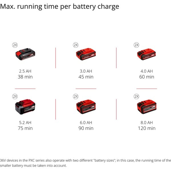 Betriebsspannung 36 Volt, 2 Akku-Steckplätze