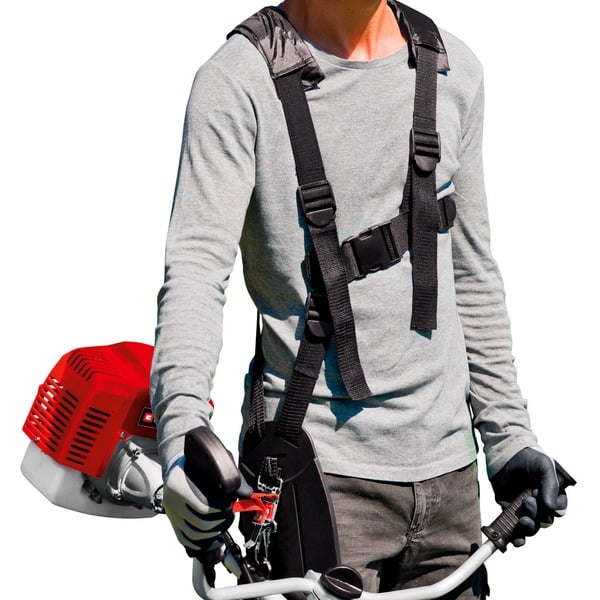 Die Einhell Benzin-Sense GH-BC 43 AS ist ein äußerst leistungsstarkes Gerät, mit dem sich auch hartnäckiger Bewuchs in schwer zugänglichen Gartenbereichen mühelos in den Griff bekommen lässt. Reichlich Kraft dafür liefert ein hochwertiger Zweitakt-Motor, der dank doppelt gelagerter Kurbelwelle und Anti-Vibrations-Funktion besonders ruhig und vibrationsarm arbeitet. Alle Bedienelemente der Sense sind gut erreichbar am universell einstellbaren Aluminium-Zweihandgriff in Bikehandle-Ausführung untergebracht, so dass sich die Sense sehr komfortabel und präzise führen lässt. Für fachgerechtes Mähen kann die GH-BC 43 AS wahlweise mit einem 4-Zahn-Messer oder einer Doppel-Fadenspule mit Tipp-Automatik bestückt werden, die im Lieferumfang enthalten sind. Die GH-BC 43 AS verfügt über einen stabilen Führungsholm aus Alurohr, der hoher Beanspruchung standhält. Ihr Quick-Start-System mit dem gut erreichbaren Primer und Auto-Choke ermöglicht schnelles und einfaches Starten. Für Arbeitssicherheit sorgt die Fliehkraftkupplung, die das Schneidwerkzeug im Leerlauf auskuppelt. Der Komfort-Tragegurt gewährleistet angenehmes Arbeiten.Art.-Nr.: 1134790