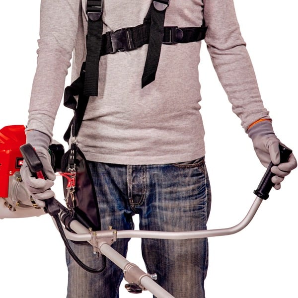 Zubehör vorhanden 4-Zahn-Messer, Profi doppel Schultergurt, Doppelfadenspule mit Tippautomatik