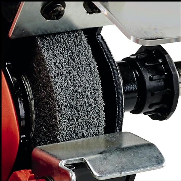 Der Doppelschleifer TC-XG 75 Kit von Einhell ist ein Kombigerät zum Schleifen und Polieren von Metallen, Kunststoffen und anderen Materialien mit zwei verschiedenen Schleifscheiben. Die seitlich anschließbare flexible Welle ist zum Schleifen, Entgraten, Polieren, Schneiden, Reinigen von Holz, Metall und Kunststoffen beim Modellbau, in der Werkstatt oder im Haushalt geeignet und ermöglicht präzise Feinarbeiten. Dabei lässt sich die Drehzahl nach Bedarf variabel einstellen. Der einstellbare Funkenschutz mit großen Schutzgläsern und die seitlich geschlossenen Schutzhauben sorgen für die nötige Sicherheit. Die Arbeitsauflagen sind verstellbar, so lässt sich das Gerät individuell für verschiedene Materialien einstellen. Eine Grobschleif- und eine Polierscheibe sind inklusive. Der Doppelschleifer TC-XG 75 Kit verfügt über einen sicheren Stand durch vier Gummifüße, eine robuste Metallkompaktbauweise und eine spielfrei kugelgelagerte Welle.Art.-Nr.: 1758854