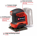 Erleben Sie die Kombination aus kraftvoller Leistung, Benutzerfreundlichkeit und kabelloser Unabhängigkeit, die den EINHELL Expert Schwingschleifer zur ersten Wahl für Ihre Schleifarbeiten macht.