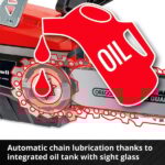 • Komfortable Bedienung: Profitieren Sie von automatischer Kettenschmierung sowie werkzeuglosem Kettenspannen und -wechsel für reibungsloses Arbeiten.