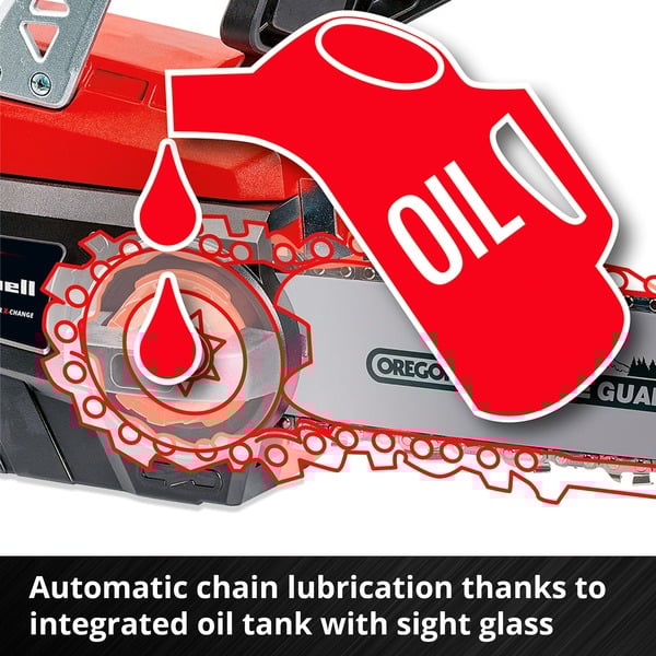 Feature OREGON Qualitätsschwert und -Kette, große Öleinfüllöffnung
