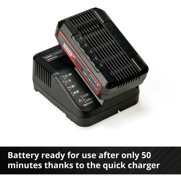 Das EINHELL 18V 2,5Ah PXC Starter Kit ist die ideale Basis, um das heimische Power X-Change-Sortiment zu beginnen oder auszubauen. Das Starter Kit besteht aus einem 18V 2,5 Ah Power X-Change-Akku und einem Schnellladegerät. Dieses System gehört zum multifunktionalen und grenzenlos untereinander kombinierbaren Akkusystem Power X-Change von EINHELL. Die Power X-Change-Akkus sind universell einsetzbar und versorgen alle Akkugeräte der gesamten Produktfamilie im Garten- und Werkstattbereich. Auch die Ladegeräte der Reihe sind universell für alle PXC-Akkus verwendbar. Die Vorteile liegen auf der Hand: Mit einem Akku und einem Ladegerät für alle Geräte spart man nicht nur bei der Anschaffung erhebliche Kosten. Die universelle Einsatzmöglichkeit schont die Umwelt und bietet gleichzeitig Flexibilität in Haus und Garten. Es gibt keine Unordnung und kein Chaos mit unterschiedlichen Akkus und Ladegeräten für jedes einzelne Gerät. Der hochwertige Akku ohne Memory-Effekt und ohne batterieübliche Selbstentladung sorgt für konstante, hohe Power. Der 18V 2,5 Ah Power X-Change ist der ideale Basis-Akku der Power X-Change-Familie und auch geeignet für den TWIN-PACK Einsatz bei 36V-Anwendungen. Das Gehäuse widersteht aufgrund der Bauweise Staub, Korrosion und mechanischen Einflüssen. Mithilfe der Griffmulde kann der Akku wieder leicht aus allen Geräten entfernt werden. Das Schnellladegerät ist kompakt designt und braucht damit nur wenig Platz, durch die integrierten Aufhängeösen ist die Wandmontage möglich. Die Schnellladetechnologie sorgt für kurze Ladezeiten. Für den optimalen Ladevorgang und höchste Sicherheit wird der Akku vom intelligenten Lademanagement ständig überwacht. Durch den Refresh-Modus ist die Reaktivierung tiefentladener Akkus möglich. Alle aktuellen Informationen werden durch die die 6-fache Zustands-LED-Anzeige bereitgestellt.Art.-Nr.: 1610461