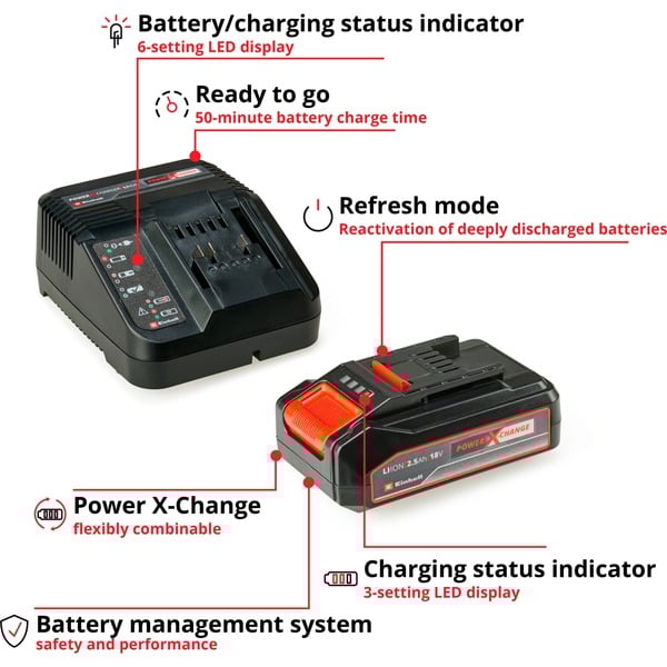 EINHELL Power-X-Change Starter-Kit, 18Volt 2,5Ah, Set (schwarz/rot, Akku + Ladegerät)