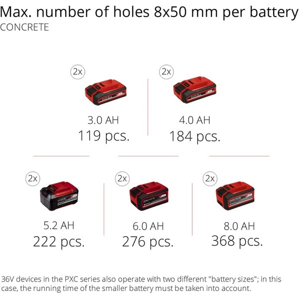 Weitere Informationen TWIN-PACK Technologie: 2×18 Volt-Antrieb mit 2 in Reihe geschalteten 18-Volt-Akkus. Die Akkus werden parallel in 2 separate Akkuhalterungen eingeschoben.