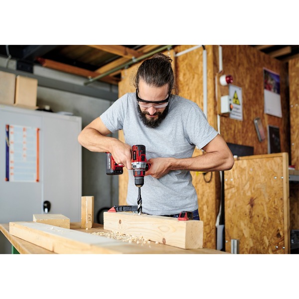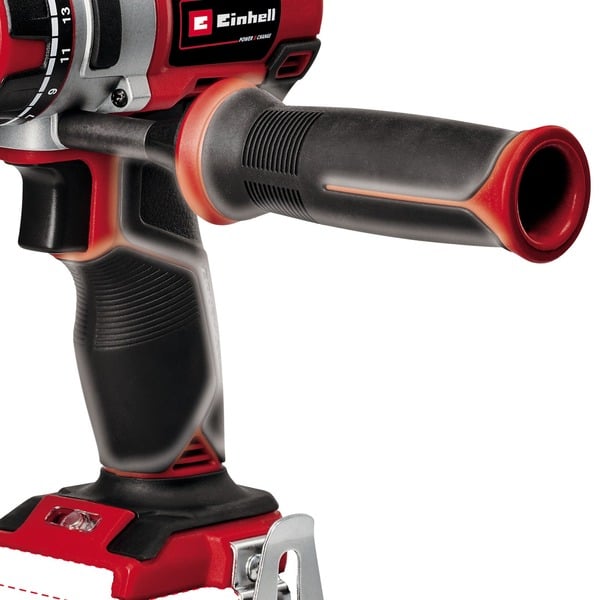 Der EINHELL Professional Akku-Bohrschrauber TE-CD 18 Li Brushless – Solo ist ein handfester Allrounder und verbindet eine starke Leistung mit längerer Laufzeit. Der bürstenlose Motor mit maximal 60Nm Leistung bietet dem Hobby-Heimwerker mehr Power zum kraftvollen Schrauben und schnellen Bohren. Mit dem Zwei-Gang-Getriebe und den 20 Drehmomentstufen lässt sich die starke Leistung des Motors in feinen Dosierungen gut unter Kontrolle halten und zielgerichtet einsetzen. Zudem ist der der TE-CD 18 Li Brushless Mitglied der Power X-Change Familie und weist damit alle Vorteile auf, die mit den leistungsstarken, kombinierbaren Akkus verbunden sind. Unerwünschtes Nachlaufen stellt dank der Quick-Stop-Funktion kein lästiges Problem mehr dar. In Kombination mit dem hochwertigen 13 Millimeter Metallbohrfutter für gängiges Zubehör lässt sich das Werkzeug schnell und mühelos wechseln. Dunklere Arbeitsbereiche sind kein Problem, denn die leuchtstarke LED bringt Licht auch in die dunkelsten Ecken. Ein ergonomisches Design mit Softgrip sorgt für einen festen Halt und angenehmes Arbeiten, zusätzlich werden die Handgelenke durch den Zusatzhandgriff geschont. Die Lieferung erfolgt ohne Akku und ohne Ladegerät. Zum Betrieb des Akku-Bohrschraubers TE-CD 18 Li ist ein separat erhältlicher 18 Volt-Systemakku aus der Power X-Change-Reihe erforderlich.Art.-Nr.: 1328209