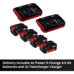 • Kraftvoller Akku-Betrieb: Angetrieben von einem 36-Volt-System (2x 18V) aus der flexiblen Power X-Change Serie, inklusive 4x 4.0Ah Akkus und 2 Twinchargern für ununterbrochenes Arbeiten.