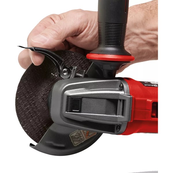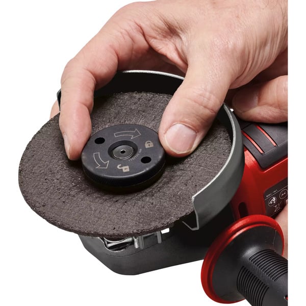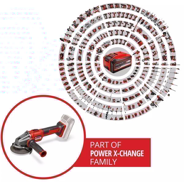 Der Akku-Winkelschleifer AXXIO 18/115 Q Professional von Einhell ist mit seinem geringen Gewicht einer der leichtesten und damit handlichsten seiner Klasse. Egal ob kraftvolles Trennen, Schleifen oder Polieren, mit seiner Leerlaufdrehzahl von 8.500 U/min ist er auf hohe Leistung ausgelegt und damit ein nützlicher Helfer in Werkstatt und Hobbykeller. Mit der Quick-Fix Nut wird kein Stirnlochschlüssel mehr für den Trennscheiben-Wechsel benötigt, der Wechsel lässt sich jetzt schnell und werkzeuglos erledigen. Der bürstenlose Motor bietet mehr Kraft und damit eine längere Akku-Laufzeit. Der Softstart und der Wiederanlaufschutz sorgen für eine erhöhte Anwendungssicherheit, der Überlastschutz stellt die Langlebigkeit des Geräts sicher. Durch die Entkopplung von Motor und Getriebe wurde eine besonders hohe Laufruhe erreicht. Das Getriebegehäuse ist aus robustem, leichtem Aluminium gefertigt, die Bauform ist sehr schlank konstruiert. Der rechts oder links verwendbare Zusatzhandgriff ist mit ergonomischem Softgrip ausgestattet und ermöglicht auch bei längeren Arbeitseinsätzen eine komfortable, sichere Handhaltung. Der Akku-Winkelschleifer AXXIO 18/115 Q gehört zur gefragten Power X-Change-Familie. Die Lieferung erfolgt ohne Akku und ohne Ladegerät. Zum Betrieb des AXXIO 18/115 Q ist ein separat erhältlicher 18 Volt-Systemakku aus der Power X-Change-Reihe erforderlich, wie er auch in den anderen Einhell Werkzeugen und Gartengeräten benutzt wird. Für optimale Ergebnisse wird ein 2,6 Ah Plus Akku oder größer empfohlen.Art.-Nr.: 1754927