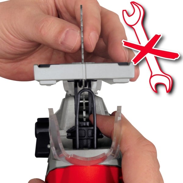 Feature 4-Stufen-Pendelhub, Werkzeugloser Sägeblattwechsel, Sägeschuh schwenkbar, Staubabsaugung, Staub-Blas-Funktion, Hubzahl-Regelelektronik