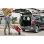 • Mobilität und Ordnung: Das Untergestell dient eingeklappt als Transport-Trolley, während Halterungen für Zubehör und Kabel am Gehäuse für Ordnung sorgen.