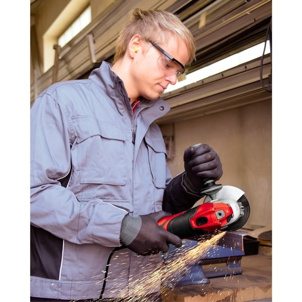 Der Winkelschleifer TE-AG 115 ist ein hochwertiges Werkzeug für Experten mit hohem Anspruch, das seine Qualitäten bei einem breiten Spektrum von Trenn-, Schleif- und Schrupparbeiten rund um Haus, Werkstatt und Garage voll ausspielt. Sein Scheibenschutz lässt sich dank werkzeugloser Schnellverstellung im Handumdrehen an jede Aufgabe anpassen, und die Spindelarretierung ermöglicht einfachen und schnellen Werkzeugwechsel. Der TE-AG 115 ist mit einem robusten, flachen Metallgetriebekopf ausgestattet, der für optimale Kraftübertragung und vibrationsarmen Lauf sorgt, was beides das Arbeiten an schwer zugänglichen Stellen erleichtert. Dank seinem schlanken Gehäuse und dem Softgrip sowohl auf dem Hauptgriff als auch auf dem Zusatzhandgriff bietet der Winkelschleifer sehr hohen Bedienkomfort. Darüber hinaus lässt sich der in drei Positionen fixierbare Zusatzhandgriff optimal auf das jeweilige Werkstück einstellen und gewährleistet damit zuverlässigen Halt für komfortables, sicheres Arbeiten. Der Stirnlochschlüssel wird im Zusatzhandgriff verwahrt, so dass er immer zur Stelle ist.Art.-Nr.: 1252331