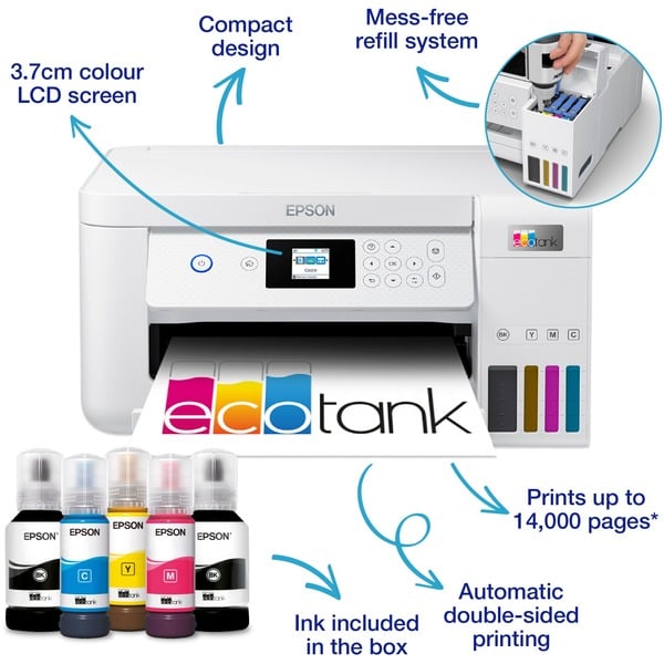 Epson EcoTank ET-2856, Multifunktionsdrucker (weiß, Scan, Kopie, USB, WLAN, Duplex (Druck))