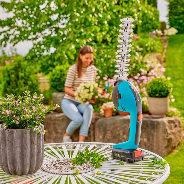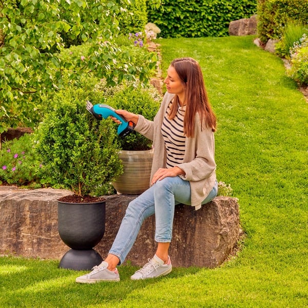 Die Akku-Grasschere PowerCut 20/18V P4A solo von GARDENA eignet sich zum komfortablen, kabellosen Schneiden von Rasenkanten, für den Formschnitt von Buchsbäumen und zum Stutzen von Sträuchern und kleinen Hecken. Ab der Saison 2024 wird das Modell mit dem 18V Power for All Akku-System betrieben, mit abnehmbarem Akku. Dieser passt auch in eine Vielzahl anderer Gartengeräte von GARDENA, kann aber auch markenübergreifend in mehr als 100 Produkten anderer Hersteller verwendet werden. Das schont die Umwelt, spart Kosten und Platz. Nicht kompatible Akkus und Ladegeräte gehören damit der Vergangenheit an. Die leichte Akku-Gras- und Strauchschere PowerCut 20/18V P4A ist mit einem ergonomisch geformten Griff ausgestattet. Sie verfügt über eine ausgewogene Balance, für eine einfache und komfortable Handhabung. Für den präzisen Schnitt von Rasenkanten und Buchsbäumen ist das 8cm breite Gras- und Buchsbaummesser ideal. Das 20cm lange Strauchmesser ist zum Schneiden von Sträuchern und kleinen Hecken geeignet. Dank den austauschbaren Messern ist das Gerät vielseitig einsetzbar. Die in Deutschland gefertigten Qualitätsmesser sind langlebig, präzisionsgeschliffen und lassen sich mit nur einem Knopfdruck lösen und einfach austauschen, ganz ohne Werkzeug. Nach dem Schnitt lässt sich die Akku-Gras- und Strauchschere PowerCut 20/18V P4A platzsparend senkrecht ins Regal stellen.Art.-Nr.: 100025165